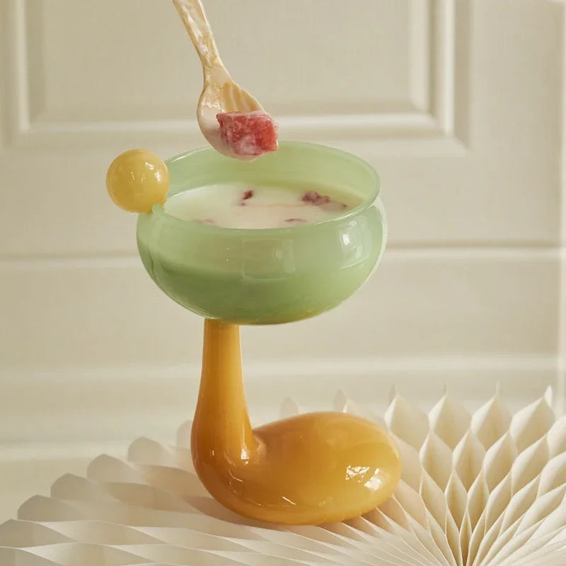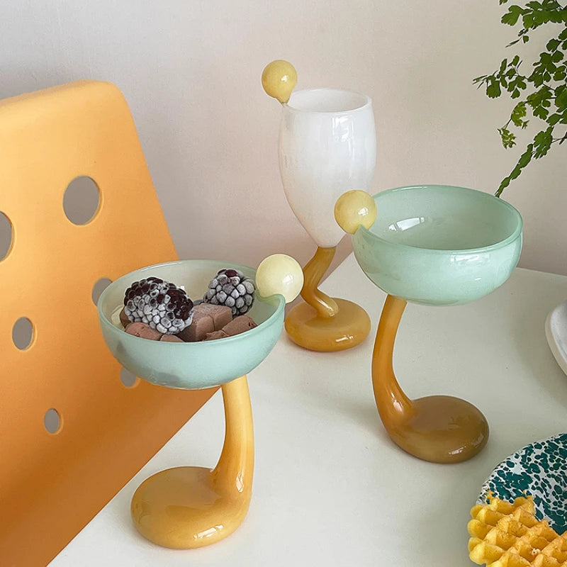 Selwyn is a colored glass dessert bowl with an elegantly designed, undulating base. With its refined curves and sculptural silhouette, it adds an artistic touch to your sweet presentations. A tableware item that is as practical as it is captivating.