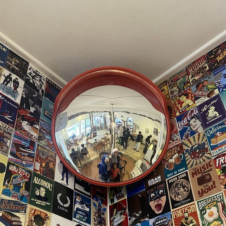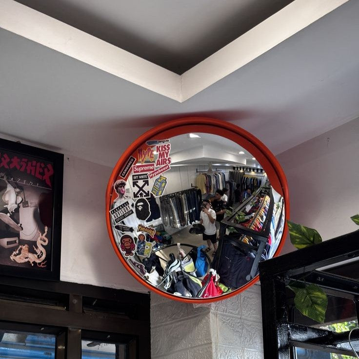 Inspired by traffic mirrors, the Traffic Mirror repurposes an iconic urban object into a decorative piece with a raw, graphic character. Its convex shape creates immediate visual depth and adds a modern touch to any interior.